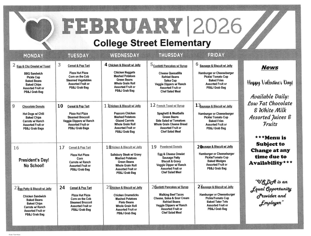 Attached is the breakfast and lunch menu for January.
